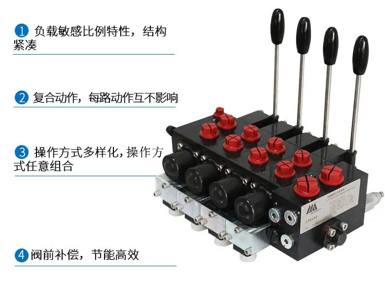 4、負載敏感多路閥,避免貨架溜車、簡化液壓管路布置,滿足多種動作不同的液壓工況需求。